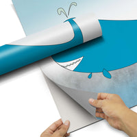 Unsere Möbelfolie 'Herr Wal' für die SMASTAD Bank mit Kasten ist der Blickfang im Kinderzimmer. Unsere Dekofolien sind hochwertige, selbsthaftende Vinylfolien (seidenmatt) und können dank Bubble-free Technologie kinderleicht verklebt werden.